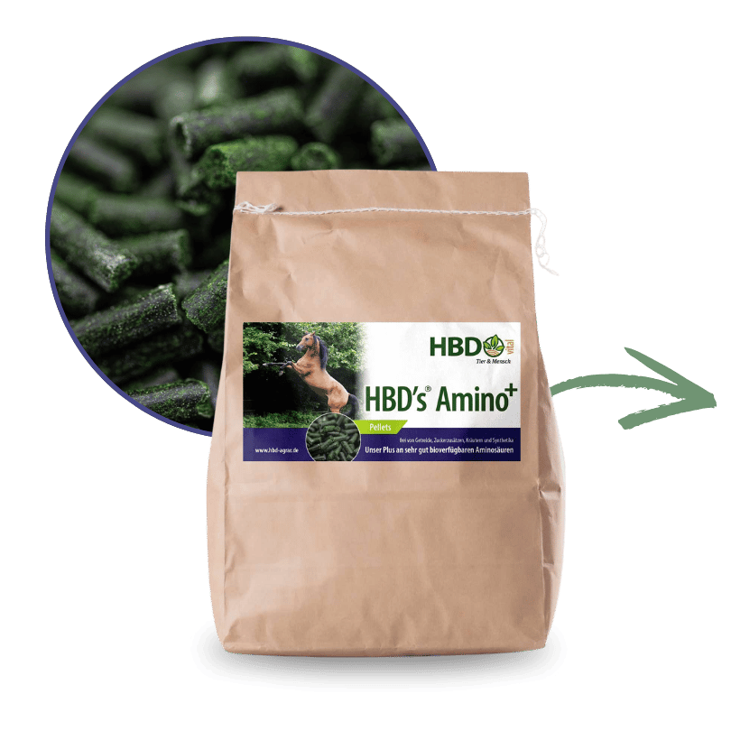 HBD’s® Amino+ versorgt Ihr Pferd mit hoch bioverfügbaren Eiweiß. Ideal für Muskelaufbau, Muskelerhalt und Stoffwechselunterstützung.